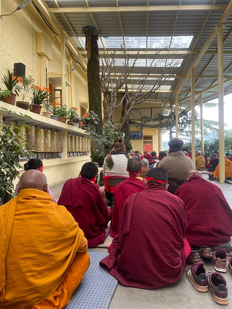 In Himachal Pradesh I chanted for hours with the Buddhist monks in a temple opposite the Dalai Lama’s residence. The view from my house where I lived in Dharamkot was much better than the Dalai Lama’s view and I wanted to share with him the blue mountains, the sunsets and the silence of my place, thinking how unfair it was that the holy man had to live among the crowds with a restricted view of the mountains.